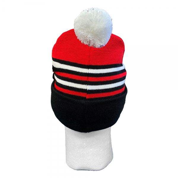 Bommelmütze mit Logo und Krempe